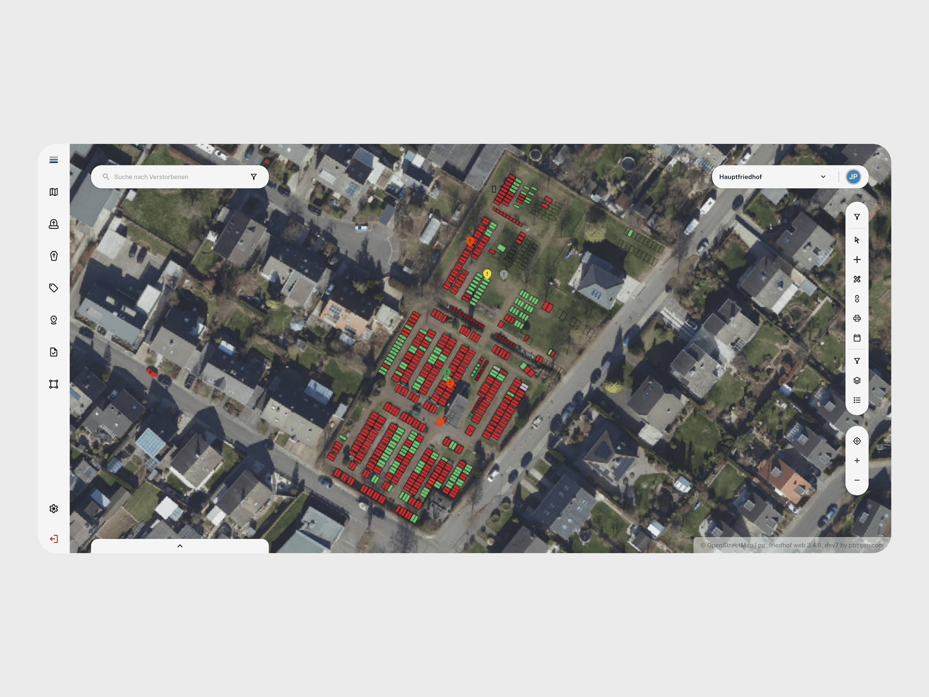 Die Webanwendung kombiniert das Friedhofsprogramm der PBSGEO mit einer leistungsfähigen Kartenkomponente. Die Software ist bestens geeignet für Mitarbeiter und Mitarbeiterinnen in der Friedhofsverwaltung.
