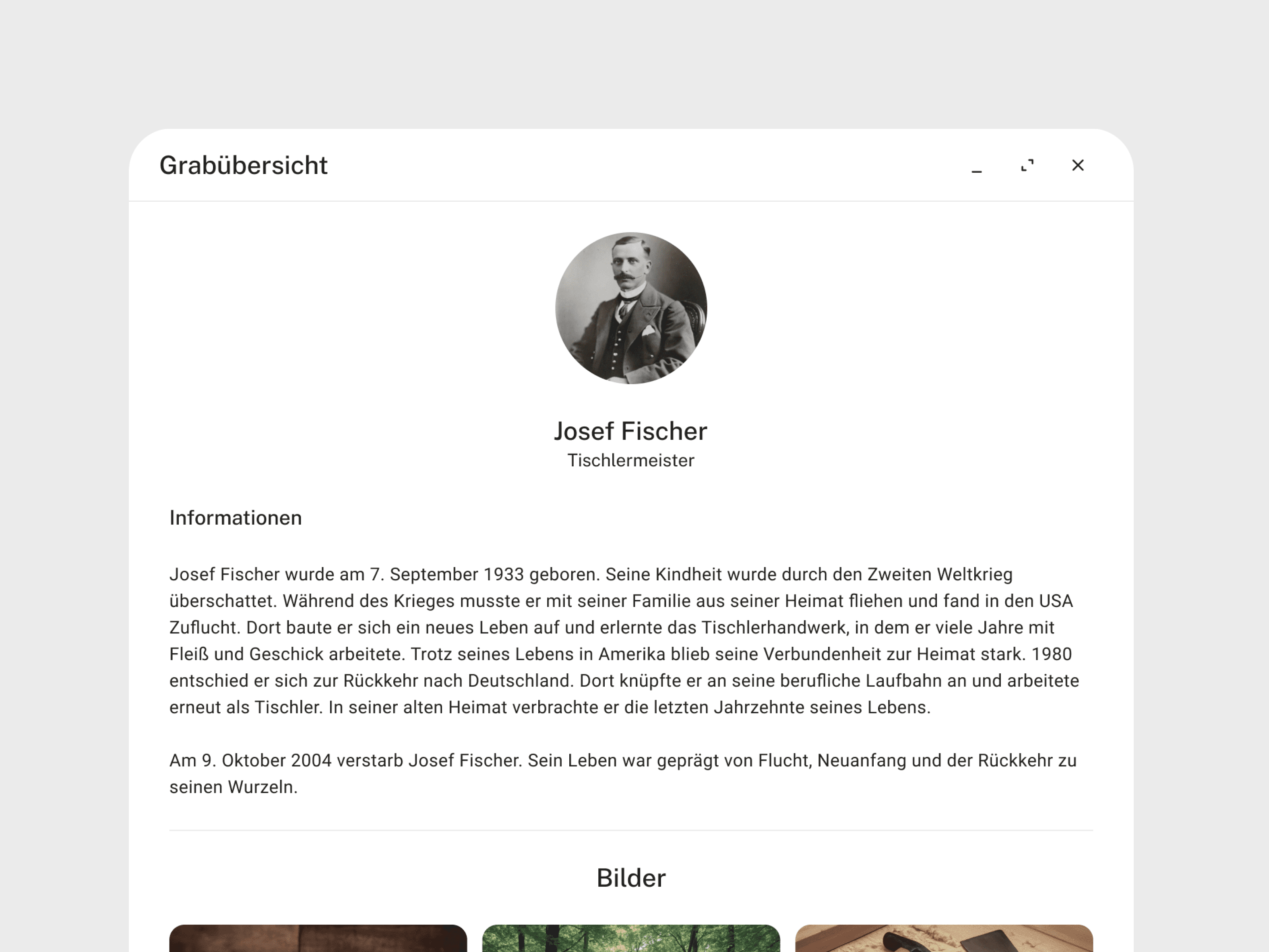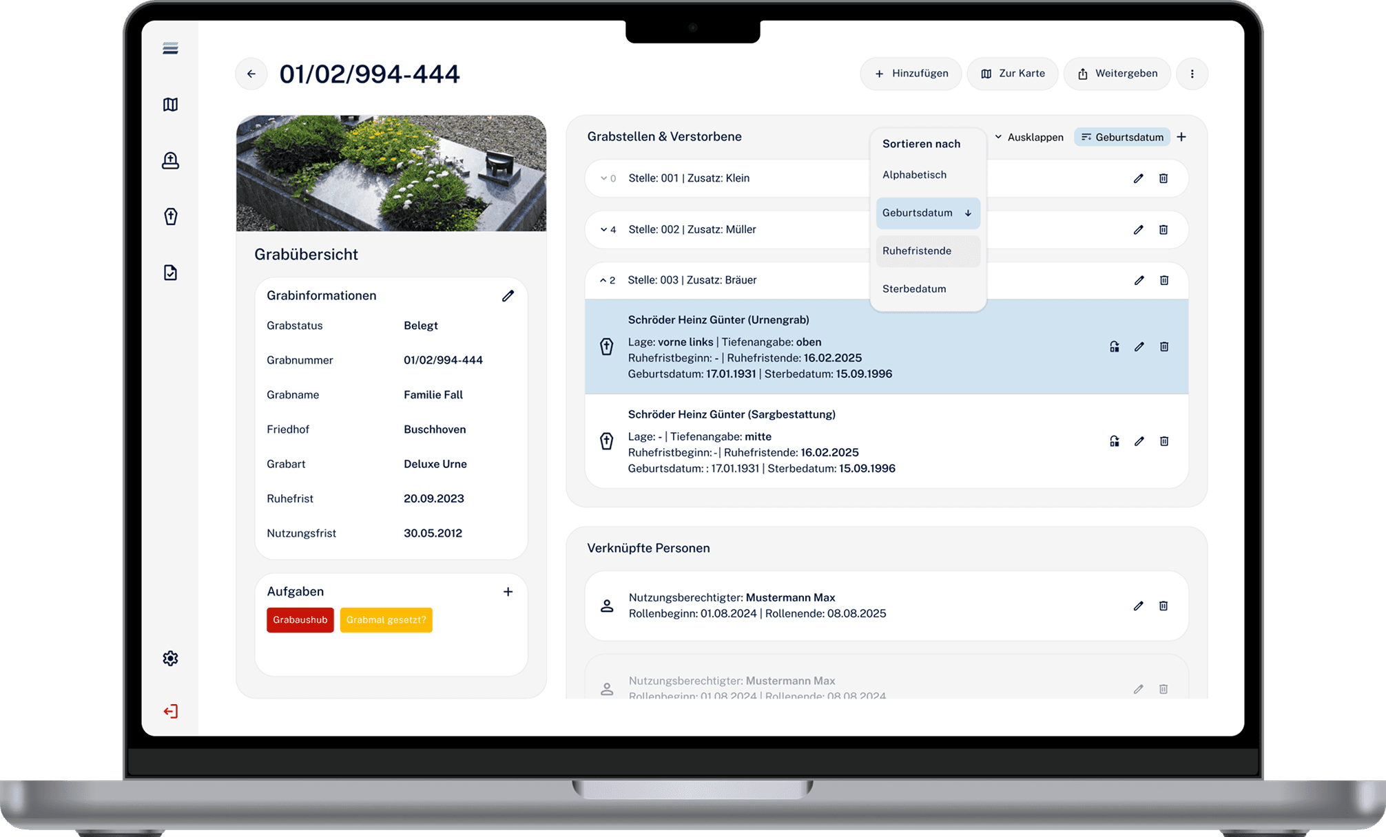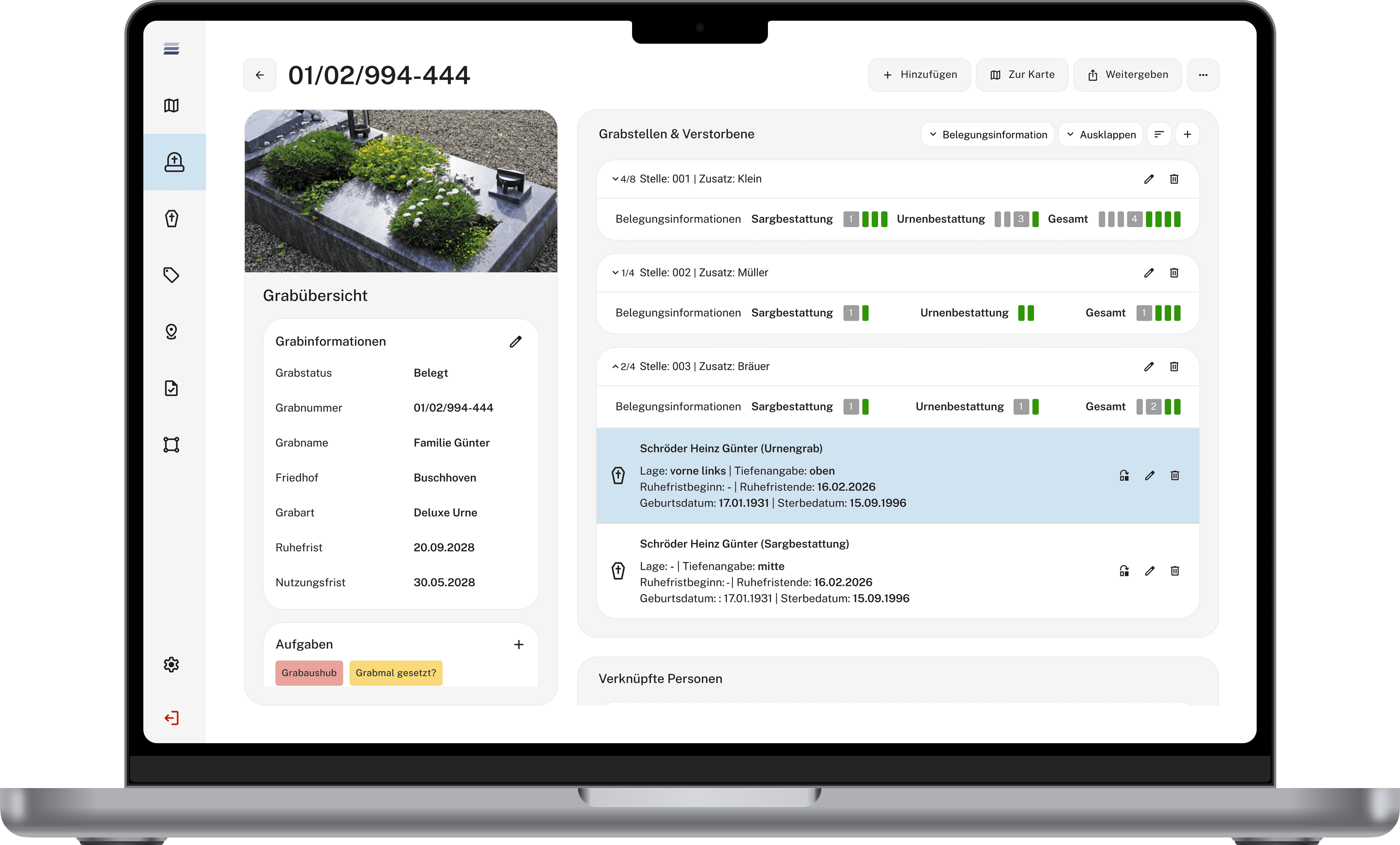 Die Anwendung für Mitarbeiter und Mitarbeiterinnen in der Friedhofsverwaltung.