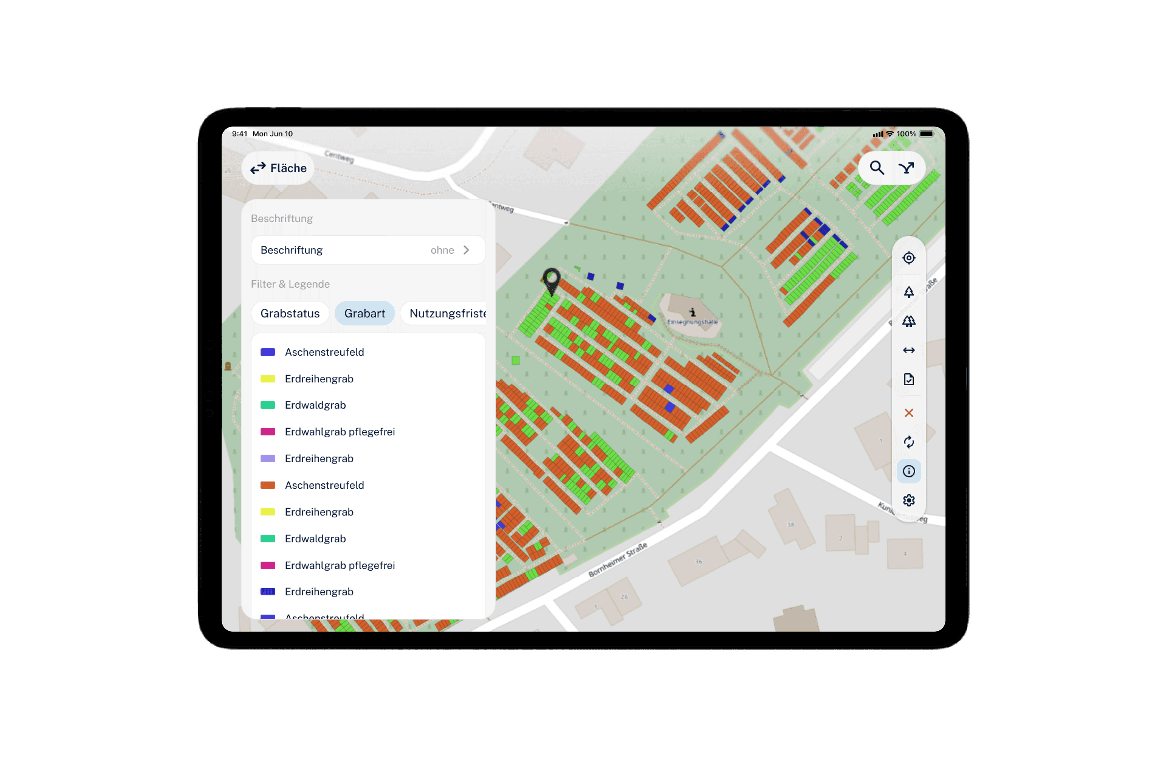 Die mobile Anwendung ist die optimale Anwendung für die technischen Mitarbeiter auf dem Friedhof.