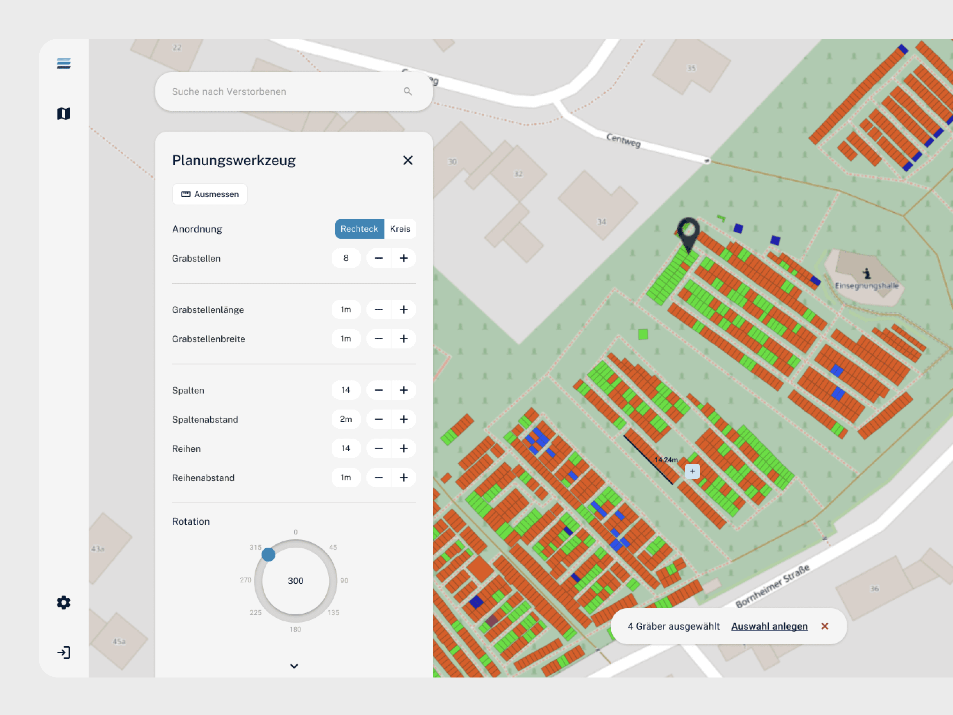 Die vielfältigen Planungsfunktionen machen es zum idealen Werkzeug für alle, die Friedhofsplanungen durchführen.